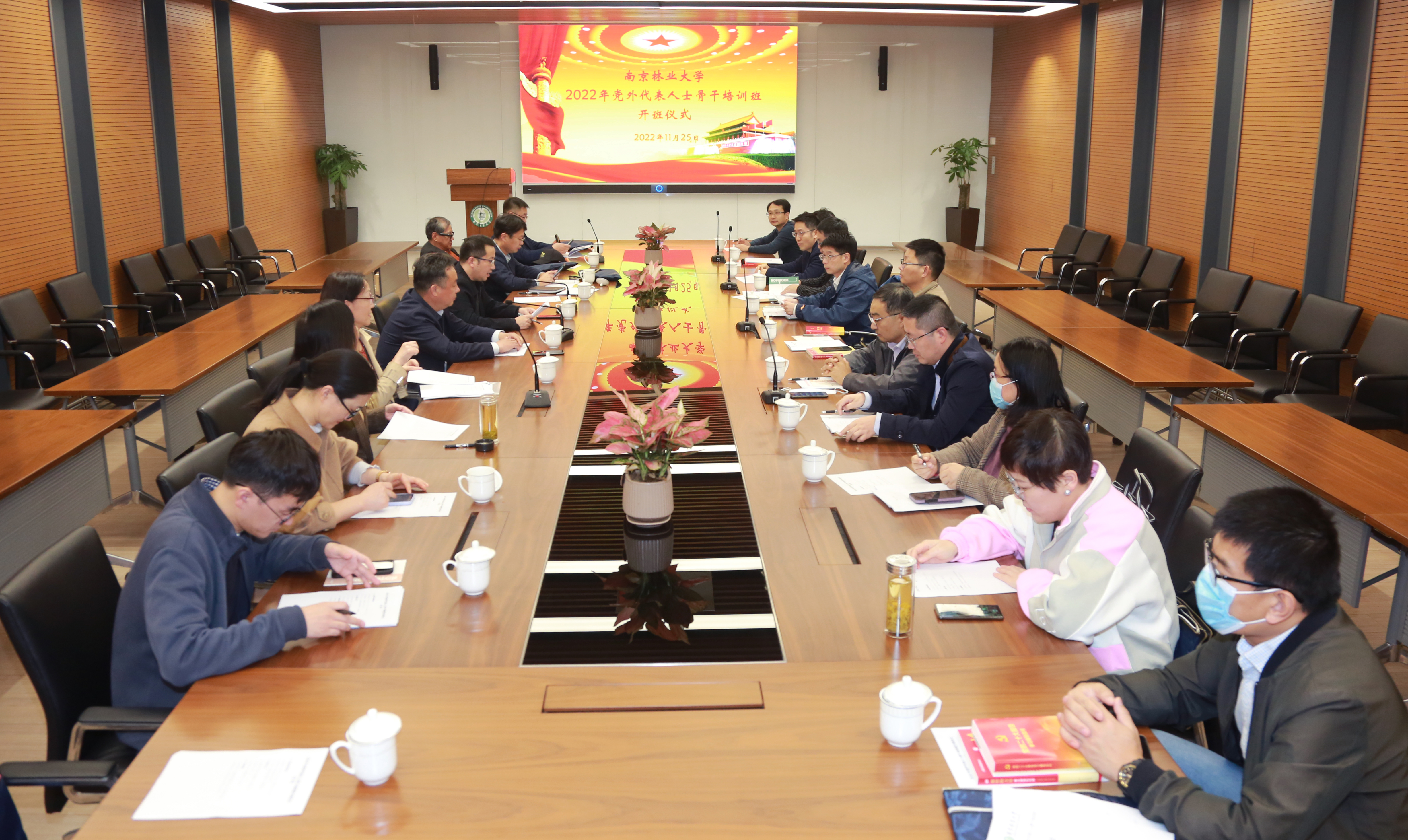 为深入学习习近平新时代中国特色社会主义思想,贯彻落实党的二十大精神学习任务要求,根据统战部年初工作安排,2022年党外代表人士骨干培训班于2022年11月25日下午在图书馆8B116报告厅开班。校党副委书记、副校长刘中亮出席仪式并做开班动员。培训班全体学员和统战部工作人员参加了仪式。仪式由校党委常委、统战部部长董博主持。